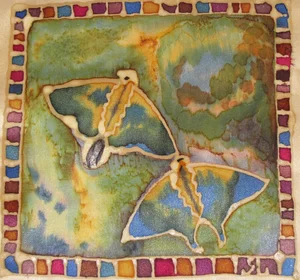 Now, three quarters of a century later, a grape leaf anemone is lifted by the wind like "the swish of a skirt in the dew". In the dawn, the rays of staghorn sumac silhouette the coppice and heath below the indigo sky. Bound with tiny bamboo sashiko stitches are wrapped in German threads of fuchsia, silver and flax, a fleeting memory of "the old lost road through the woods." Her spirit, that spark of creativity, swept away by the "weather and rain" of typhoons, flooding the two islands she inhabited, Okinawa and Vietnam. That beauty, that creativity, that spirit of adventure, is "underneath the coppice and heath, and the thin anemones." Silk, salt, beeswax join after a century of living and dying, techniques from lost years of what could have been, now are created by her daughter, with reverence and love, for there "was once a road through the woods."